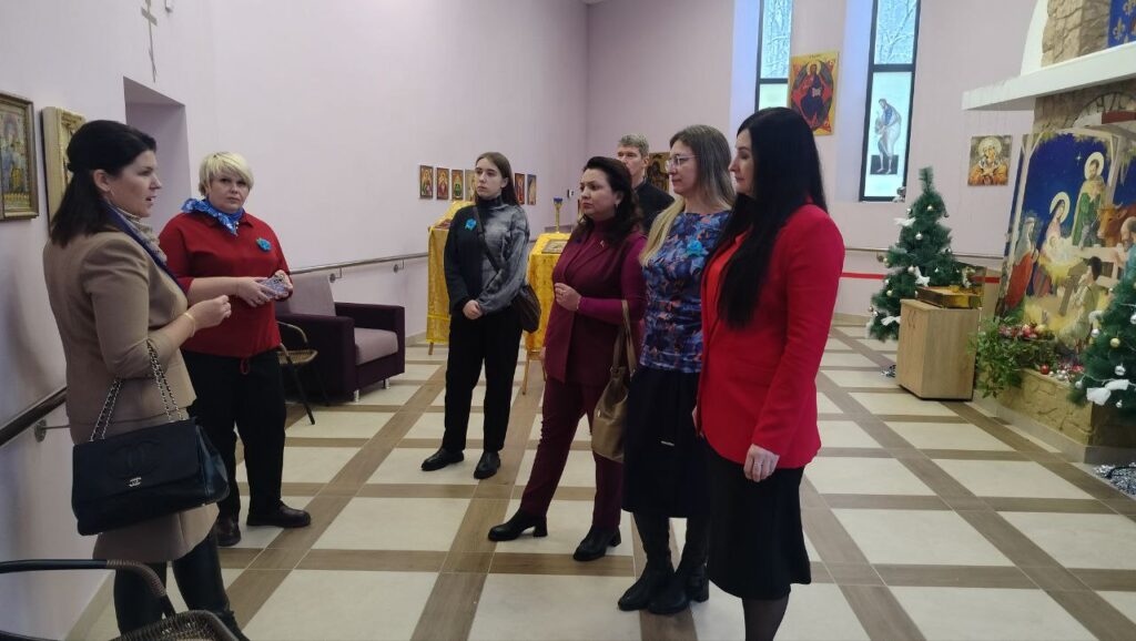 Пока молодежь давала мастер класс для постояльцев, делегация ознакомилась с Часовней пансионата и недавно освящённой иконой «Рождества Христова».